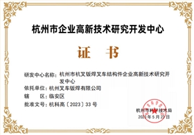 近期,杭州市科學技術局發(fā)布《關于認定2023年杭州市企業(yè)高新技術研究開發(fā)中心的通知》,杭叉集團下屬杭叉橋箱、杭叉門架、杭叉機械設備、杭叉智能、杭叉鈑焊5家子公司的企業(yè)高新技術研究開發(fā)中心成功上榜!