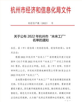 喜訊:杭叉集團成功入選2022年杭州市“未來工廠”之“鏈主工廠”