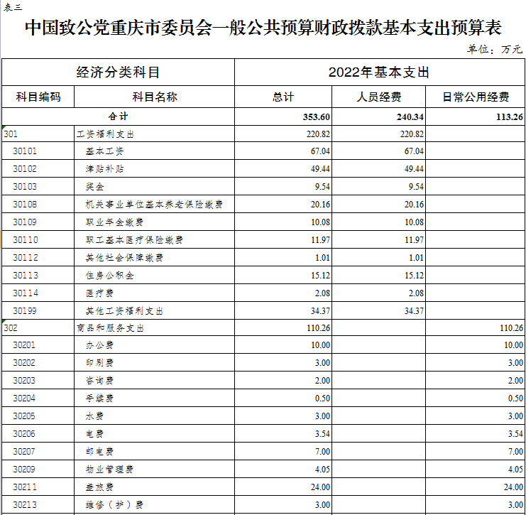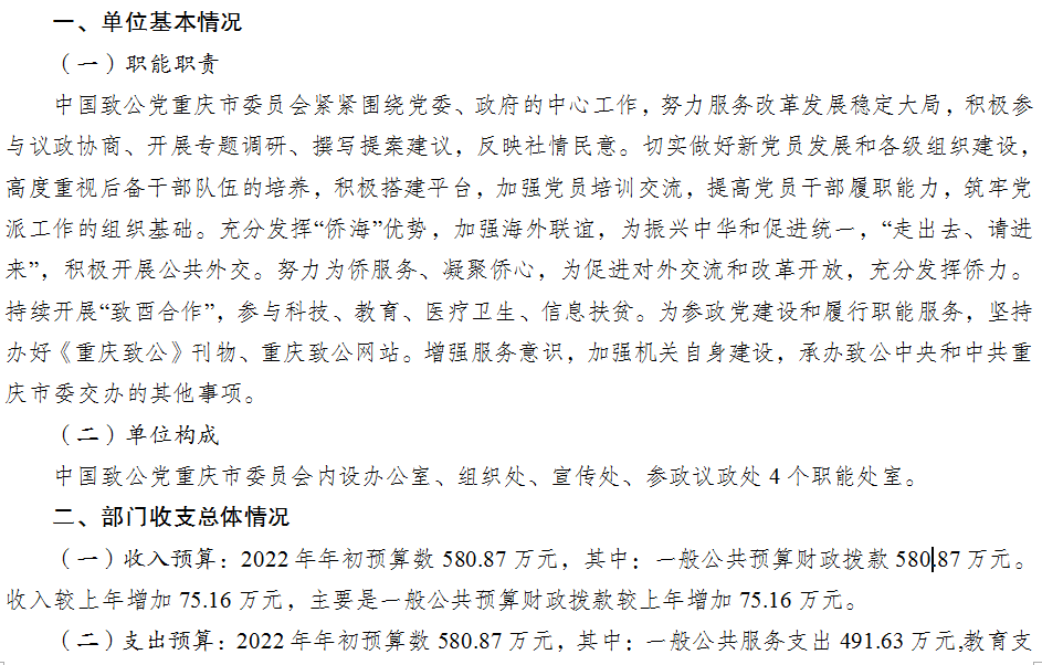 中國致公黨重慶市委員會2022年部門預算情況說明